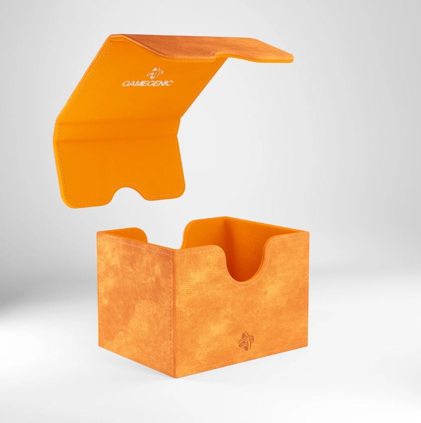 Sidekick 100+ was created in an exclusive extra-large version that holds 100 regular double-sleeved cards and has extra space for additional tokens, or it fits perfectly a Commander Deck in thicker inner sleeves. Moreover, the Sidekick 100+ XL stands out combining our new black Nexofyber+ material with a vibrant orange microfiber inner lining. The Convertible line is designed to present cards in new and unique ways. Remove the lid, attach it to the bottom or start tilting your box in a wide variety of ways. Powerful magnets keep it safely closed. Designed to hold up to 100 double-sleeved cards in extra thick Inner Sleeves. Holds 100 regular double-sleeved cards and additional tokens, or a Commander Deck in thicker inner sleeves. Sideloading: cards are stored horizontally. Completely removable cover clips to the bottom to save precious space at the gaming table. Freedom of use: Wide variety of ways to display and tilt your opened box. Rigid and durable box. Powerful magnets for a precise and secure closure. Nexofyber+ surface + selected microfiber inner lining. 100% compatible with convertible storage solutions, such as the Dungeon.