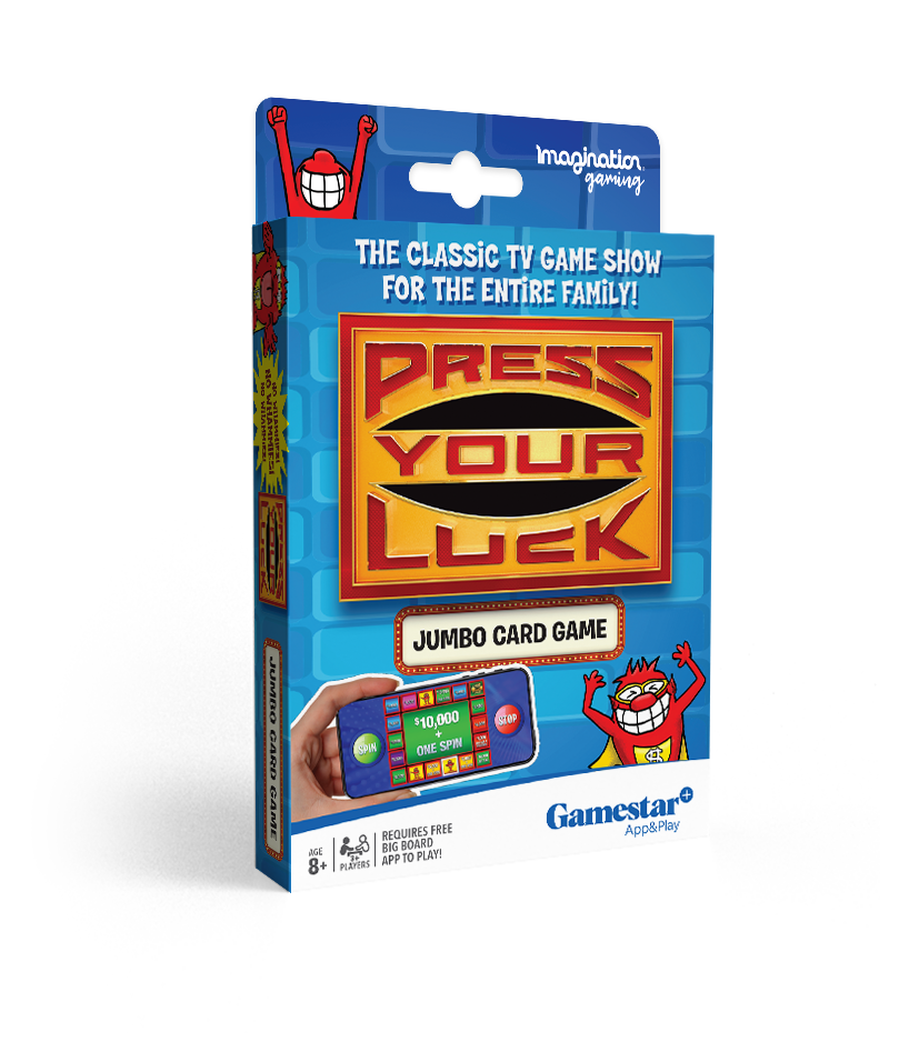 Now you can play Press Your Luck at home with your family and friends! This deluxe jumbo card game is great for 3 or more players and includes 37 jumbo doublesided question cards, 12 jumbo answer cards, 1 jumbo card cover, and instructions. Unfold the scoreboard, write your names, and ask each other questions from the cards. This game is full of trivia, tactics, choices, and chances.