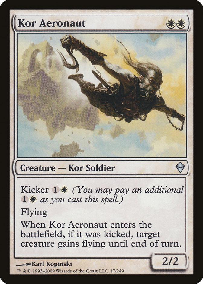 When Kor Aeronaut enters the battlefield, if it was kicked, target creature gains flying until end of turn.