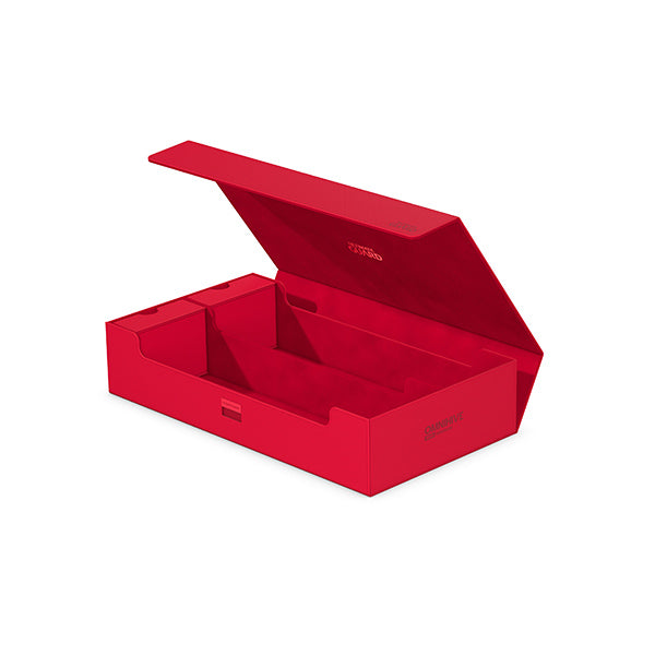 The ultimate spacious and flexible box for storing large collections. This box can hold more than1000 double- sleeved cards or carry multiple decks and/or Play-Mats plus other Ultimate Guard products like the Sidewinder 133+. Two removable, magnetic, adjustable and stackable trays make this box unique: it’s adaptable for all kinds of games and formats and enables multiple different ways of storing and using your collection.
